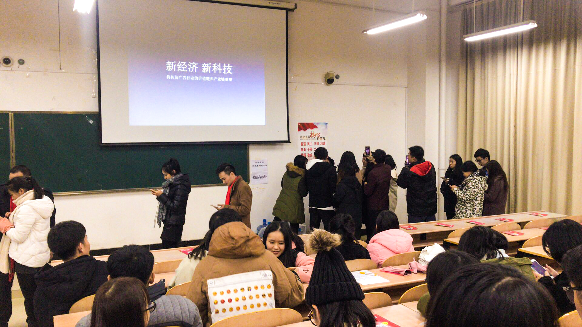 讲座中,罗主任带动在座的大学生进行互动,怎样通过AR门道扫一扫寻找广告内容,怎样领取AR红包?怎样通过AR门道创建广告内容等,现场气氛很热烈。