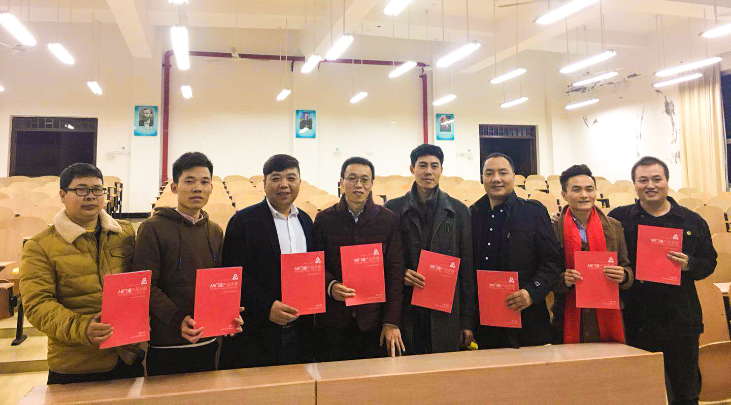 12月14日下午2点30,深圳市牛牛门道云科技有限公司(简称AR门道总部)联合广西门道科技有限公司在广西师范大学职业技术师范学院(简称职师学院)举办“AR+大学生创新创业”专题讲座。专题讲座得到职师学院牟院长、黄主任、双创中心罗主任以广西师范大学创新创业学院(简称双创学院)蒙院长、杨主任的大力支持,使得AR门道“百校创客计划”广西师范大学之行的推广效果超出预期,获得圆满成功。